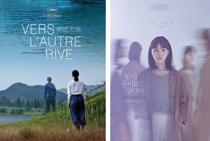 2015년에 제작된 구로사와 기요시 감독의 영화 <해안가로의 여행> (2015)과 2018년에 제작된 유은정 감독의 영화 <밤의 문이 열린다> (2018)는 ‘유령’과 ‘여행’이라는 소재를 공유하고 있을 뿐만 아니라, 두 영화 모두 삶과 죽음의 교차로를 거쳐 위로로 향해간다는 점에서 서로 많이 닮았다고 말할 수 있다. 최종 목적지가 ‘위로’인 여행인 두 영화의 전제는 두 가지 리얼리티가 존재한다는 것이다. 하나는 삶을 살아가는 자의 리얼리티, 또 다른 하나는 망자 혹은 삶과 죽음의 경계에 놓인 자의 리얼리티다. 살아가는 자로서는 당연히 삶의 영역만이 유일한 리얼리티이며 이외의 리얼리티는 환상으로 인식되겠지만, 망자 및 죽음의 문턱 앞에 선 자로서는 죽음의 영역 또한 하나의 리얼리티다. <해안가로의 여행>과 <밤의 문이 열린다>는 두 리얼리티를 이분법적인 구도로 그려내는 대신 공존하되 엇갈리게 놓는다. 두 리얼리티를 단순히 공존시키는 방식 대신 교차로처럼 엇갈리게 놓은 이유는 주인공의 운동성과 주체성을 강화하고, 이 두 가지 성질이 내면 치유에 기여하는 과정을 윤리적으로 그려내기 위함과 관련이 있다.