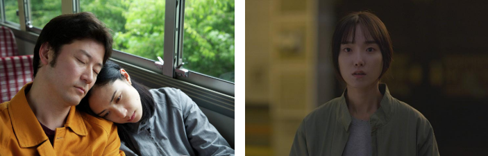 <해안가로의 여행>의 주인공 ‘미즈키(후카츠 에리)’와 <밤의 문이 열린다>의 주인공 ‘혜정(한해인)’은 각자의 이유로 무감각한 삶을 살아가는 인물이다. ‘미즈키’는 3년 전 바다에서 갑자기 일어난 남편 ‘유스케(아사노 타다노부)’의 실종 사건으로 자신만의 생활 리듬을 잃었을 뿐만 아니라 원망과 같은 감정이 강하다 보니 오히려 상실감마저 증발한 시간을 보낸다. ‘혜정’은 당장 먹고 사는 게 쉽지 않아 타인과 관계를 맺는 걸 기피할뿐더러 자신의 감정을 살펴보는 일마저도 마다한다. 근데, 아무리 창작자여도 감각이 무뎌진 삶을 살아가는 자들에게 쉽게 위로를 건넨다면, 타인의 개인 환경 및 현 상황을 무시했다는 측면에서 비윤리적으로 보일 위험이 크다. 하지만, 구로사와 기요시 감독과 유은정 감독은 삶과 죽음의 영역이 공존하는 상태를 교차로처럼 묘사하고, 주인공에게 이 길을 스스로 빠져나올 충분한 시간만 제공한다. 보다 더 정확히 말하자면, 구로사와 기요시 감독은 주인공 ‘미즈키’에게 삶과 죽음의 교차로를 죽은 남편 ‘유스케’와 함께 걸을 기회만 부여함으로써 못다 한 이야기를 하며 응어리진 감정을 해소하고 주체적으로 잃어버린 3년을 회복하도록 돕는다. 유은정 감독은 주인공 ‘혜정’이 시간을 역행하는 여정을 보낼 수 있도록 함으로써 자신뿐만 아니라 타인의 목소리와 감정을 외면했던 과거의 시간을 만회할 수 있게 한다.