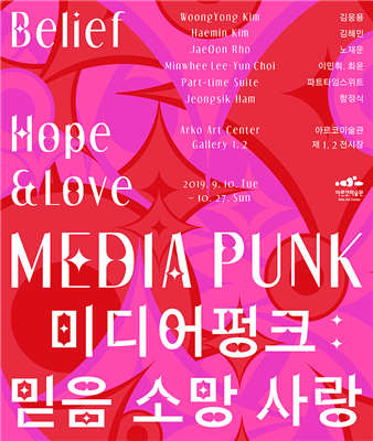 아르코미술관의 ≪미디어펑크: 믿음 소망 사랑≫전은 영상을 신뢰하는 우리의 믿음을 비틀고 꼬집는 작품들로 이루어져있다. 작품들은 관람자가 익히 보던 형식을 벗어나있거나, 일상적인 영상에 대한 은근한 기대를 박살내거나 관람자를 불편하게 만든다. 전시명은 전시가 보이고자하는 바를 아주 잘 드러내고 있다. 본 전시에서 영상매체에 대한 우리의 믿음, 거기에 담긴 소망과 그에 대한 사랑은 전복된다.
