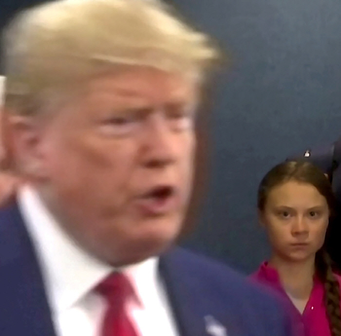회의장에서 스친 트럼프를 향한 툰베리의 레이저 눈빛