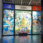 그의 새로운 창문 작업 <봄의 욕망의 정원>(2019)은 전통적인 스테인드글라스나 종교적 심연화처럼 보이지만, 그 내용과 시각요소는 기독교 도상과는 거리가 있습니다. 삼면화는 세 개의 창문에 나뉘어 있고, 각각은 여성의 남성에 대한 자발적인 또는 반자발적인 헌신과 복종의 이야기를 다루고 있는데요. 창문 중앙의 성모 마리아는 처녀로 임신마여 예수를 낳고 그 삶을 그에게 헌신합니다. 왼쪽은 인어공주로, 왕좌를 위해 그의 목소리를 포기하고 왕자를 살리기 위해 결혼 전날 자신의 몸을 바다에 던집니다. 그리고 오른쪽 선녀와 나무꾼, 나무꾼은 목욕을 하러 내려온 선녀의 옷을 숨겨 그녀를 붙잡아 두지만 결국 선녀는 하늘로 탈출합니다.