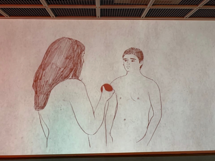 재해석했다. 아담과 이브는 사과를 먹었지만, 영상 속 두