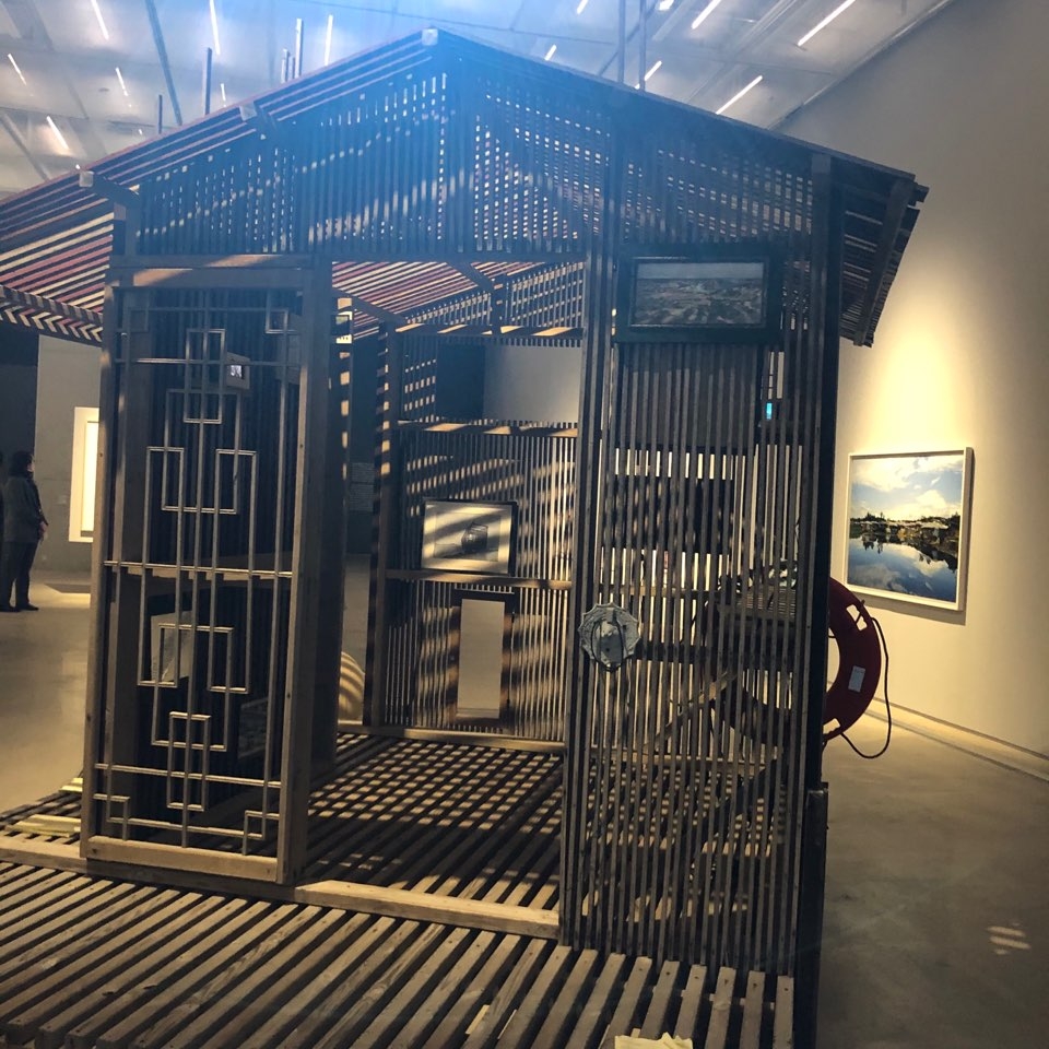 첨벙이는 물소리와 함께 만나는 이 작품은 송성진의 <한평조차>이다. 로힝야 난민촌을 방문한 경험을 한국적 상황과 연결시킨 작품이라 한다. 한 평의 집을 짓고 온전히 존속시키는 과정을 보여주는 작품으로, 작가는 이를 통해 개개인의 생존 투쟁이 일상화된 시대를 이야기한다. 경기도 안산 갯벌 위에 1평짜리 집을 지어놓고 조수나 기상상황에 따라 떠내려가고 넘어지기를 반복하는 과정을 두 달간 기록한 영상이다. 언제나 외부의 힘과 권위에 의해 결정되는 난민이나 이주민의 불안한 삶을 연상시킨다. 집을 집어삼킬 듯한 파도의 첨벙 대는 소리는 일정한 리듬감을 가져다주어 안정감을 불러일으킨다. 그럼에도 불구하고 집이 무너지지 않을까 하는 불안이 가시지 않는 이유는 끊임없이 외부에 의해 흔들리는 집을 시각적 영상으로 보여주기 때문일 것이라는 생각이 든다. <한평조차>는 한평 조차도 편안한 마음을 낼 수 없는 현대인의 마음을 형상화한 것 같기도 하다.