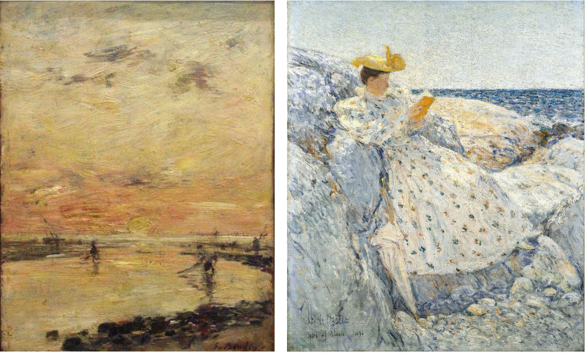 (좌) 외젠 부댕, 조수, <바다의 일몰>, 제작연도미상 / (우) 차일드 하삼, <여름 햇빛(숄스 섬)>, 1892