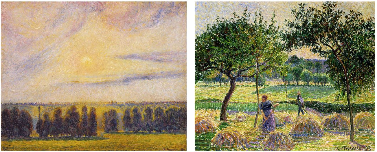 (좌) 카미유 피사로, <에라니의 일몰>, 1890 / (우) <풍요로운 수확>, 1893