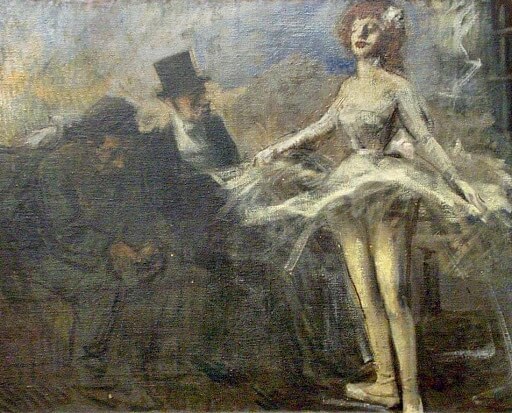 본 전시에서 드가의 작품은 한 작품이 소개된다. 허나 단 한 작품만으로도 드가의 특징을 온당 느낄 수 있다. <"장애물 경마" 실내 인테리어>가 바로 그것이다. 드가는 경마에 대한 관심이 많았다. 그는 경마의 순간을 마치 야외에서 생생하게 그려낸 듯 화폭 속에 옮겨내는데, 실내작업을 한 것이라곤 믿기 어렵다. 또한 문틈 사이로 앞선 기수가 탄 말의 형체와, 뒤따라오는 말의 형체가 자유롭게 잘려나간 것은, 스냅사진의 구도에서 기인한 드가의 전매특허와 같은 구도라 할 수 있다. 카메라가 그저 보이는 시각만을 기계적으로 포착하듯, 드가는 기계적인 차가운 태도로 시각만을 화폭 속에 옮겨 담으려 하였다. 그가 이 같은 불완전한 구도 내에 옮겨내고자 하는 것은 바로 찰나였다. 본 전시에서 드가의 작품이 단 한 작품만 소개되는 것은 아쉬운 일이나, 드가가 즐겨 그린 소재를 접할 수 없는 것은 아니다. 사실주의의 풍자화의 대가 도미에의 전통을 이어받고, 드가의 비공식 제자로서 무용수에 대한 관심을 선보인 장 루이 포랭의 <어린 무용수>를 통해, 드가의 관심을 엿볼 수 있다. 물론 드가에서처럼 시각 자체에 대한 관심이라 보긴 어렵다. 도미에의 작품에서처럼 그는 당대 발레리나를 두고 부르주아지 남성들의 저열함과, 여성들의 나약함, 경제적 위계를 고발하고자 하였다. 드가의 작품 속에서 우리는 무용수를 둘러싼 정치성을 읽어낼 수 없다. 다만 당대의 시대상 속에서 추측할 뿐이다. 허나 포랭의 작품에서는 마치 기독교적인 순교의 하얀 발레복을 입고 남성들에게 전시되는 발레리나와, 그것을 불길하게 응시하는 거무튀튀한 옷을 입은 남성들의 대비가 이뤄진다. 당대 발레리나들은 부르주아지 남성에 의해 매춘을 강요받거나, 성적 후원자로 전락되곤 하였다. 그녀들은 암암리에 화폐로 전락했던 것이다. 드가의 작품에서처럼 발레리나에 대한 아름다움은 쉽게 찾아볼 수 없다. 허나 인상주의의 빠른 필치와 색채 그 자체의 강조는, 발레리나가 처할 위기와 포랭의 정치성을 더욱 효과적으로 강호하고 있다.
