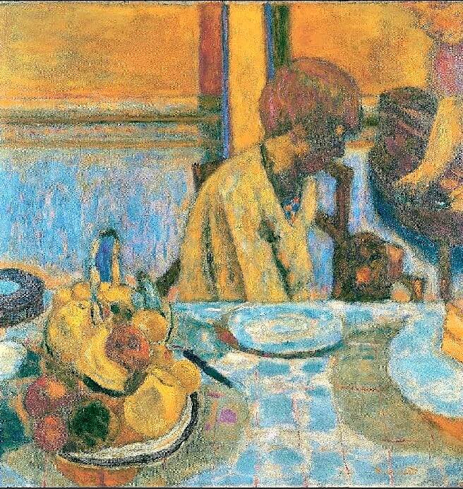 이 같은 후기인상주의자들 중 일부는 나비파라는 사조로 재분류된다. 그들은 오딜롱 르동, 귀스타브 모로 등이 몸담았던 상징주의의 계승자라 할 수 있다. 그들은 물질적으로 흘러가는 당대의 세태 속에서 정신성과 종교성을 회복시키고자 하였고, 그들의 사조 명에서의 '나비'도 히브리어에서 '예언자'를 의미한다. 본 전시에서 한때 후기인상주의자로 분류되었지만, 이후 나비파로 재분류된 피에르 보나르와 폴 세뤼지에가 소개된다. 먼저 피에르 보나르의 <식당>부터 살펴보자. 분명 일상의 순간이지만 색채는 비가시적인, 외피 너머의 내면을 표현하는 수단처럼 느껴진다. 그것은 야수파 및 표현주의가 보인 정념에 상응하는 비자연적 색채와도 다르다. 그들과 달리 필치도 온화하다. 보나르의 비자연적인 색채는 대단히 온화하고 고요하다. 또한 물질적인 황금의 고귀함을 연상케 하던 르누아르의 노랑보다도 더욱 어둡고 둔탁하다. 색채와 형태, 그리고 잘려나간 구도 등은 그것이 물리적으로 삭막하게 환원되지 않게끔 모호한 여지를 남긴다. 우리는 다만 가시적인 영역 너머의 고요한 비가시적 영역, 고요한 명상의 영역으로 인도되어 잠시 속세를 잊어낼 뿐이다. 폴 세뤼지에의 <아이들의 저녁 식사>도 마찬가지다. 후기인상주의에 거쳐 다시금 회복된, 구성의 일환으로 환원되어 화가들에게 무관심한 대상인 인류가 아니라, 그것 자체로 존귀한 인간에 대한 관심이 돋보인다. 또한 양식을 나누는 종교적인 색채와 아이들의 진중한 표정을 통해, 우리는 물질적인 세태 속에서 잃어버리기 쉬운 인간성, 도덕성, 근원적인 가치를 환기하게 된다. 물질적으로 흘러가는 당대에 금욕적인 가치, 느린 분위기, 물리적인 것 너머의 비가시적인 영역의 뉘앙스를 품기는 것 자체가 예언자로서 그들이 도래시키고자 하는 일련의 예지에 다름 아니었을 것이다.