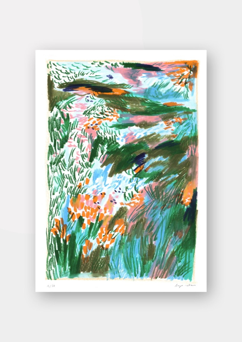 키가 큰 풀과 꽃으로 채워진 드넓은 들판을 가로질러 가는 여자가 있다. 여러가지 색의 식물들, 저 멀리 보이는 산, 하늘, 그리고 들판 한가운데의 여자로 이 그림은 구성되어 있다. 그림을 보고 대부분의 사람들은 `다채롭다`는 인상을 받을 것이다. 허리춤까지 오는 풀들의 색을 천천히 들여다보면, 조금씩 다른 초록빛 사이에 하늘빛과 분홍빛이 있음을 알 수 있다. 식물의 줄기 색으로 볼 수 없는 짙은 푸른빛의 색도 있다. 위 그림은 일러스트레이터 Beya Rebaï (b.1955)의 작품이다. 그녀는 어떻게 실제로 눈에 보이지 않는 색을 보고 느낄 수 있었던 것일까. 그녀의 그림과 함께, 그녀가 풍경을 어떻게 바라보고 느꼈을지에 관한 이야기를 해보고자 한다.