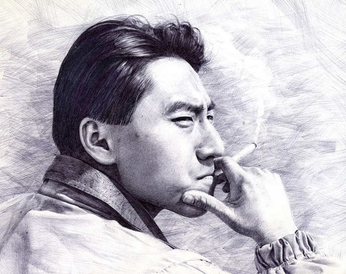 작가는 볼펜 스케치를 즐겨한다. 어린 시절부터 가장 사랑하는 그림 도구가 바로 흰색의 기둥에 검은 머리를 가진 모나미 볼펜이다. 볼펜이란 종류 또한 지금은 매우 다양하다. 그러나 작가에게 모나미 볼펜이란 어린 시절의 향수와 정서를 담고 있기에 매우 중요하다 하겠다. 작가는 자신을 표현하며 무엇을 들여다보았을까? 그리고 자신에게 중요한 것이 무엇인가? 하는 미시사적 사유를 이끌도록 깊은 심연의 힘을 자아내고 있다. 젊은 시절의 고뇌 그리고 인생에 대해 뜻모를 진지함을 가진 그런 시절이 누구나에게나 존재할 것이다. 그는 지금 담배를 물고는 인상을 찡그린 채 어딘가를 응시하고 있다.손가락에는 힘이 들어가 있어 턱 부분의 살갗은눌려져 있는 모습이다. 깊이 빨아들인 저 담배 연기를 내뿜으며 그림 속의 작가는 하얗게 퍼져나가는 진한 담배 연기와 함께 세상으로 무엇을 뱉어냈을까 하는 궁금증을 자아내게 한다. 작가는 제임스 밀런(영국의 스케치 작가)에게서 많은 영감을 받았다고 말한다. 자화상은 단순한 선을 이용하여 그림을 그렸음에도 불구하고 많은 것을 담고 있다. 작가가 담은 것이 무엇이든 우리는 그림을 바라보며 공허하면서도 그로테스크한 삶의 이면을 느끼도록다시 한번 삶을 반추하는 기회를 부여하고 있다.