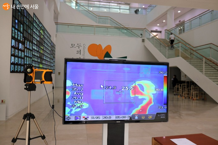 미술관 입구에서 이뤄지는 발열체크의 모습 ⓒ김은주