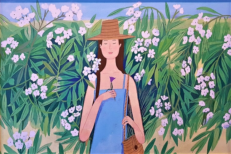 오킹의 작품은 주변에 대한 관찰에서 시작된다. 여름의 향기와 풍경, 그 싱그러움과 상쾌함을 그려내고, 그 아래서 여유롭게 쉬는 사람들과 자신을 그려낸다. 그렇게 관찰자가 된 작가는 라벤더, 데이지, 가을로 접어드는 숲, 수평선이 길게 늘어선 바다를 살피며 스스로 자연에 동화된다. 그러면서도 자신만의 상상에 빠지거나 행복한 시간을 그려낼 때면 소위 인스타그램에 올라갈 것 같은 모습을 보여준다. 허영심이 아닌 자신의 빛나는 순간을 스스로 알고, 작가는 자신의 가장 아름답고 소중한 순간을 포착할 줄 안다. 대부분 그런 순간들은 다 지나가고 나서 깨닫기에, 작품을 다 보고 나서는 관람객은 차 한 잔과 함께 스마트폰 속 앨범을 켜 가장 아름다웠던 날들을 되뇔 수도 있다.
