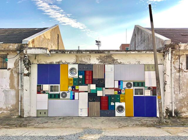 <테트리스 청주>, 2019, 청주에서 버려진 물건들로 작업