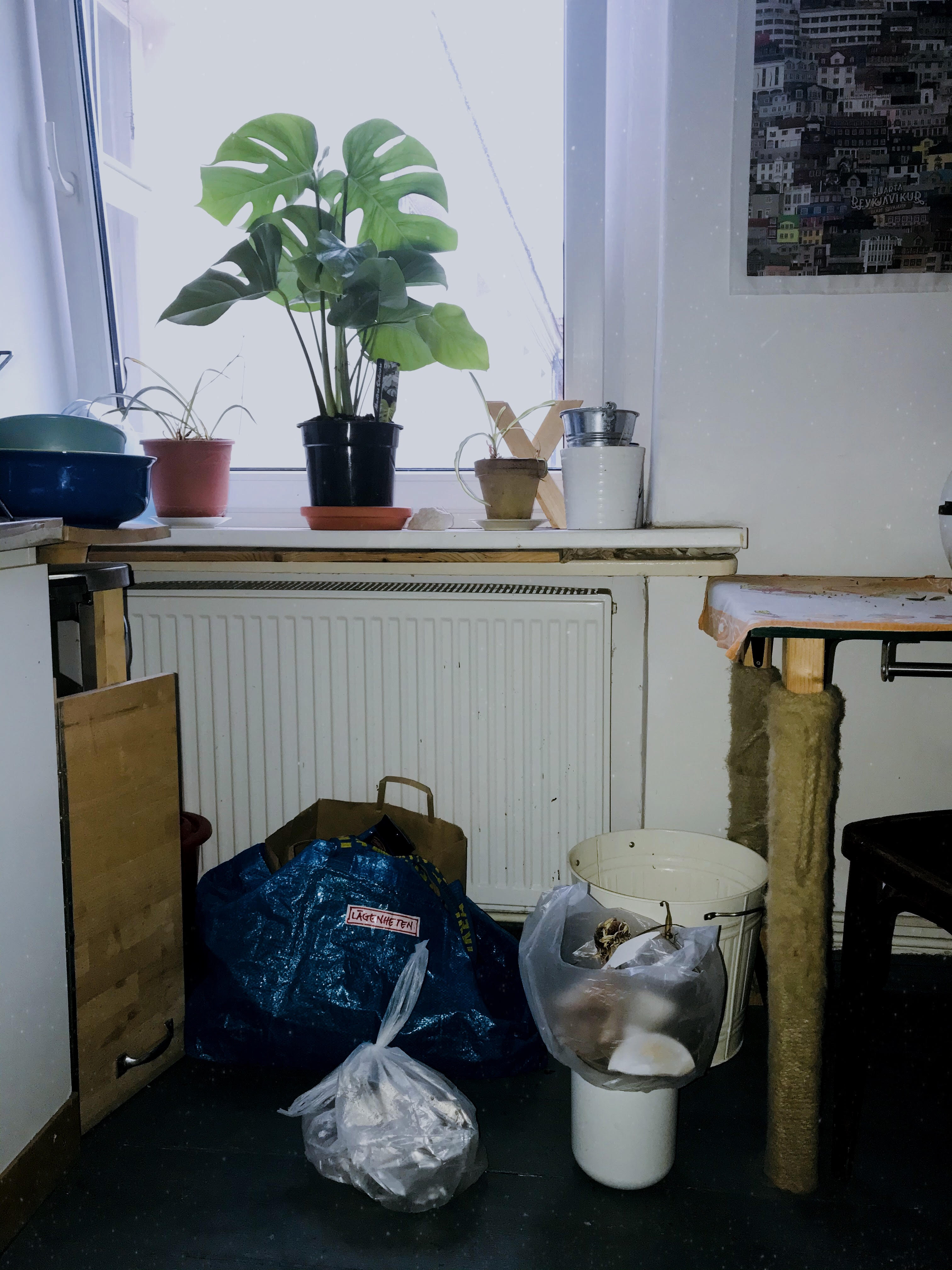 그래도 깨끗한 날 베를린 집 부엌, 라쉬 툰뵤크 사진을 떠올리며 플래시를 사용해 찍었다