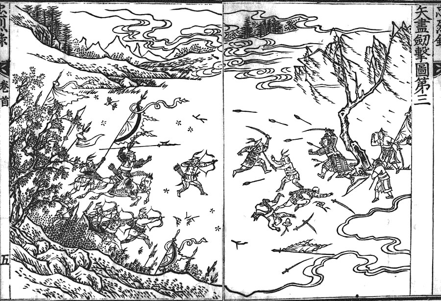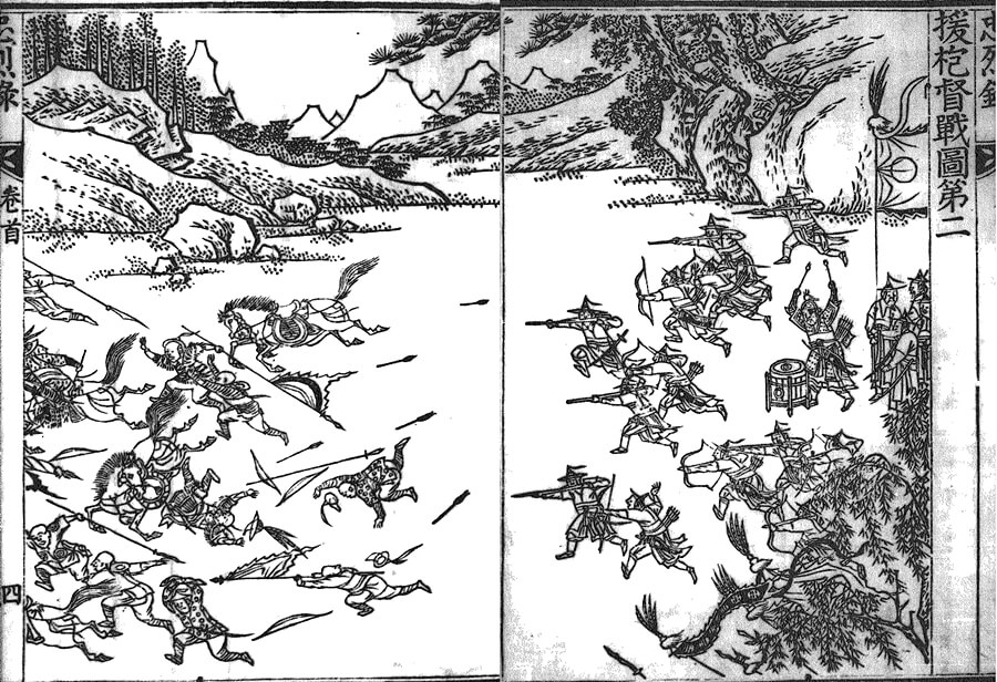제가 이 글을 쓰기 위해 참고한 논문 <심하전투의 명장 김응하와 『충렬록』 판화>(원광대학교 인문학연구소, 2011)의 저자 유미나 원광대 교수는 1798년 간행본 그림을 다음과 같이 평가했습니다. “소밀(疏密)의 변화감을 살리고, 서양화의 원근법을 수용하여 탄탄한 구조와 긴장감이 살아있는 화면을 이루어내었다. 다양한 자세와 무기를 들고 전투에 임하는 인물들을 역동감 있게 묘사한 전투 장면은 전쟁 기록화에서 신경지를 보여주었다고 할 수 있다.”