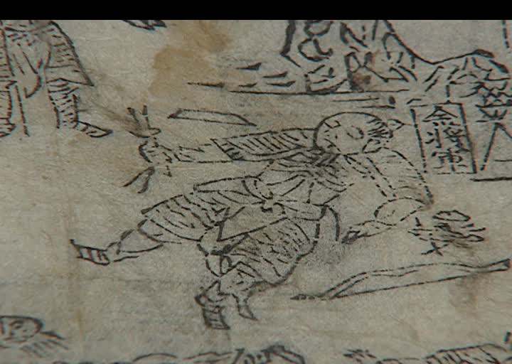 화살이 떨어지자 칼을 들고 싸우는 모습을 그린 <시진검격도(矢盡劒擊圖)>
