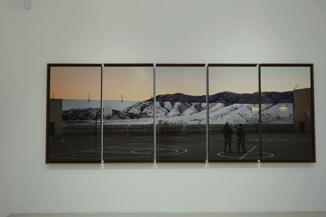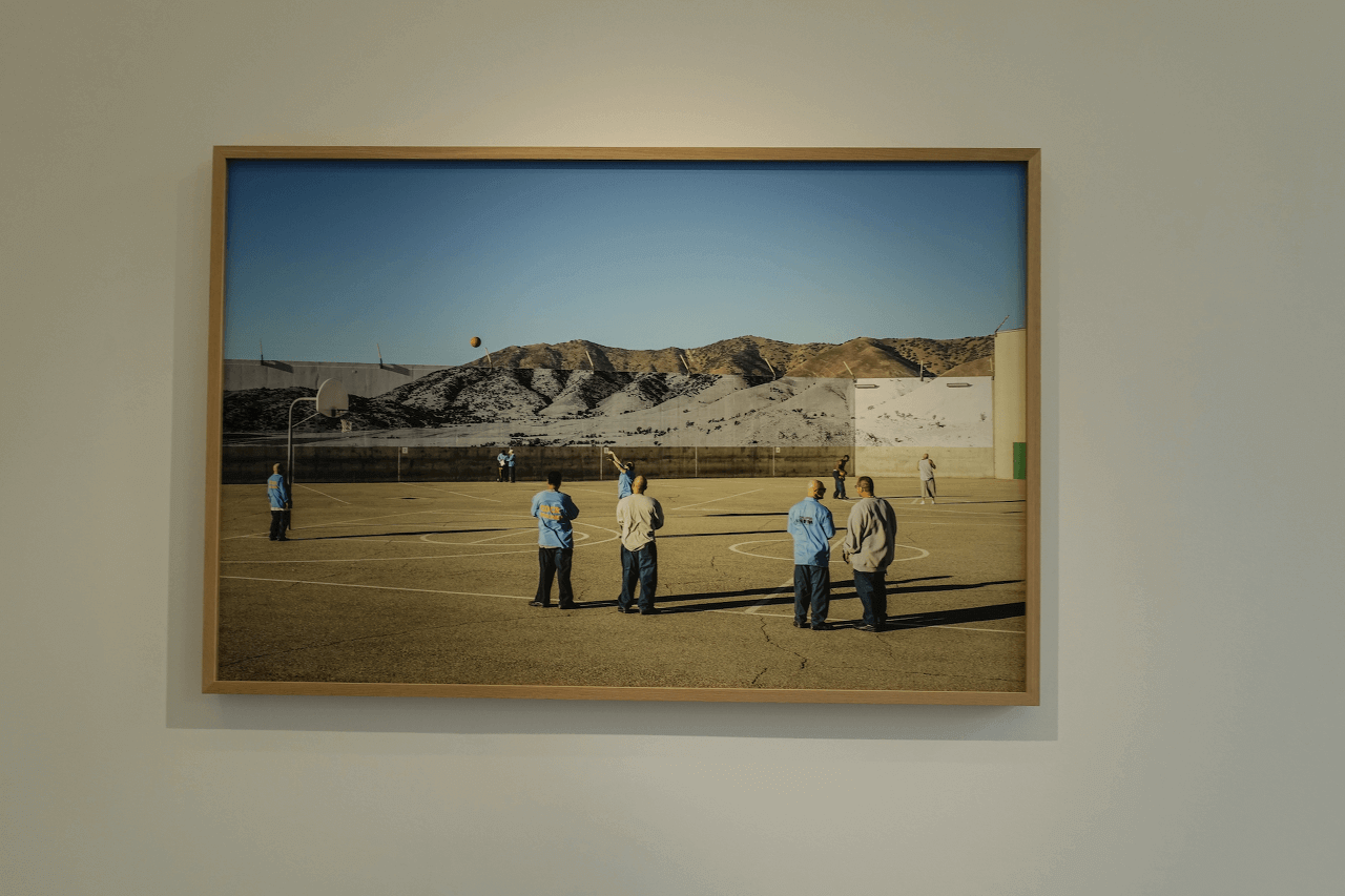 가장 중심에 있는 사진 작업은 장기 복역수들의 프로필 사진들을 찍어 공간을 채우는 작업, 감옥의 외벽에 산의 풍경과 연장된 사진을 붙이는 작업이다.