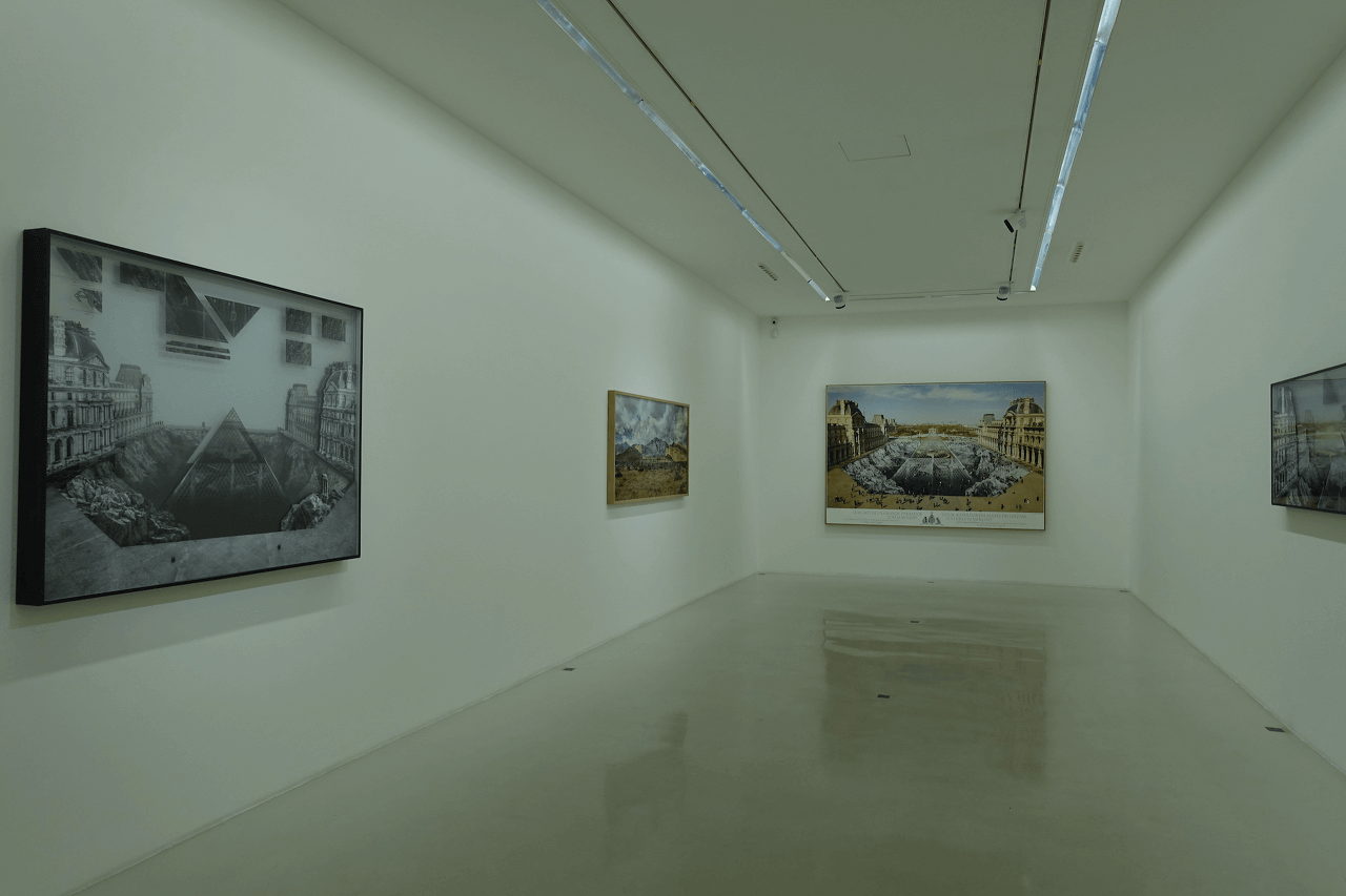 전시장의 마지막 섹션은 지난 2019년 3월에 루브르의 피라미드에서 진행되었던 <피라미드 지우기> 프로젝트에 할애되었다. 루브르의 새로운 상징이 된 피라미드에 건물과 연결되는 눈속임 사진을 붙여 피라미드를 없애고 바닥은 마지 암석 아래로 떨어져 내려가는 듯한 거대한 사진을 붙여 새로운 공간 경험을 할 수 있도록 만들었다. 단 11시간 16분 동안 진행되었던 이 임시적이고 장소 특정적인 작업은 이렇게 사진 아카이브로 남아있다.