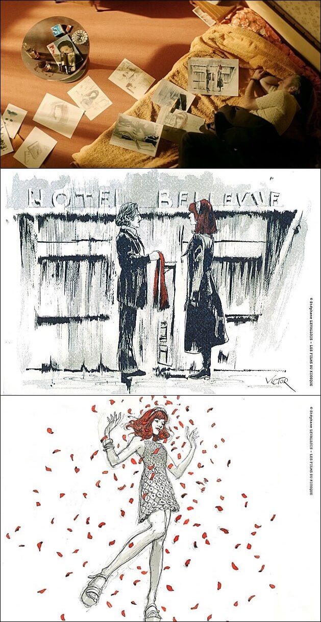 영화에서는 한때 잘 나가는 만화가였던 빅토르가 자신의 행복했던 그 시절 추억을 그림으로 그리는 장면이 종종 등장합니다. 사랑했던 여인과 함께 한 순간들을 그리기도 하고 그녀의 미소, 붉은 머리칼, 춤추는 실루엣을 스케치하기도 하죠. 그의 드로잉들이 실제 장면으로 구현되는 것을 지켜보는 것 또한 이 영화의 묘미 중 하나입니다.