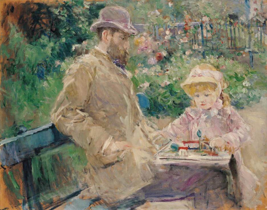 베르트 모리조, 딸(줄리)과 함께 있는 외젠 마네, 1881