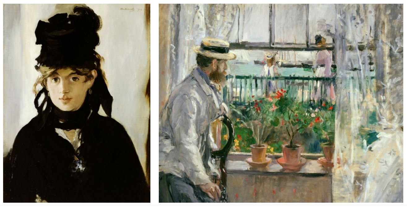 (좌) 에두아르 마네가 그린 베르트 모리조의 초상, 1872 / (우) 베르트 모리조, 와이트 섬에서의 외젠 마네, 1875