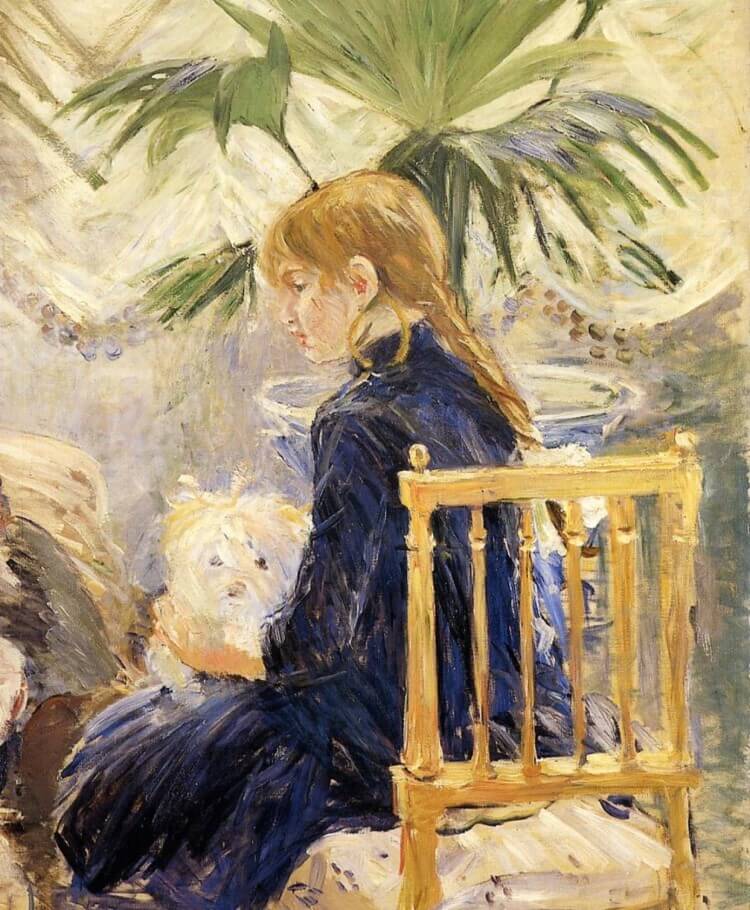 그녀는 그림뿐만 아니라 인상주의의 아버지라 불리는 에두아르 마네와의 특별한 인연으로도 유명합니다. 마네의 뮤즈이자 모델로서 마네의 작품 속에 종종 등장하기도 하였고 이 둘의 특별한 교류는 영화 <마네의 제비꽃 여인: 베르트 모리조>에도 잘 나타나있지요. 그녀는 마네의 동생인 외젠 마네와 결혼하여 '줄리'라는 어여쁜 딸을 슬하에 두었는데요. 줄리의 사랑스러운 모습은 그녀의 그림에서도 종종 발견할 수 있습니다.
