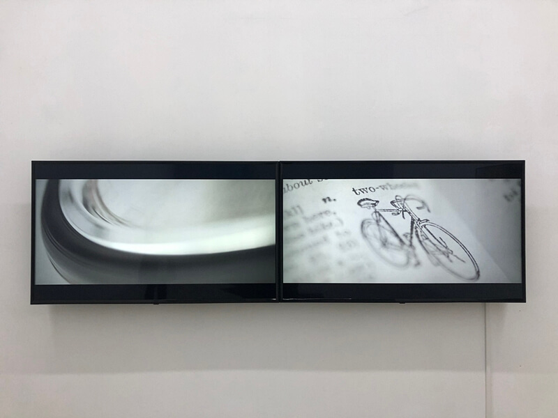 표민홍은 자전거 도난 사건을 주제로 한 2채널 비디오 <낮밤(day for night)>(2020)에서 잃어버린 자전거와 흔적도 없이 사라진 도둑의 자취를 좆으며 ‘부재’라는 하나의 사태를 설명한다. 총 3개의 챕터로 기록된 <낮밤(day for night)>은 도난당했던 자전거가 시간이 흐른 뒤 다시 원래 주인(일곱 살 소년)에게로 돌아오는 과정을 그린 논-내러티브 영상이다. 불안한 마음으로 자전거를 기다렸던 침묵의 밤들, 그리고 끝내 그 정체가 밝혀지지 않은 도둑은 소년의 상상 속에서 그럴싸한 허구로 재탄생한다. 보이지 않는 것들을 현실화, 실재화, 가시화 시키기 위해 상상의 언어를 동원하는 작가의 행위는 앞이 깜깜해 아무것도 볼 수 없는 밤을 위해(for night) 낮(day)의 빛이 존재하는 것이라는 작품의 설정과 동일한 맥락에서 해석될 수 있다. 이와 더불어 텍스트 작업인 <당신에 관한 것이 아닌>(2020)과 <나를 봤다면, 보지 않았다면>(2019)은 유약하거나 투명한 매체의 물성을 활용해 ‘보임(seen)’과 ‘보이지 않음(un-seen)’ 사이를 자유롭게 넘나든다. 창문에 아크릴 바니쉬, 수정구슬에 바이닐 텍스트로 구성된 각각의 작품들은 분명히 그곳에 존재하지만 눈으로 확인하기 어렵고, 설령 확인이 가능하다 해도 그 의미를 파악하기 어려운 작가의 ‘말’을 상징한다.