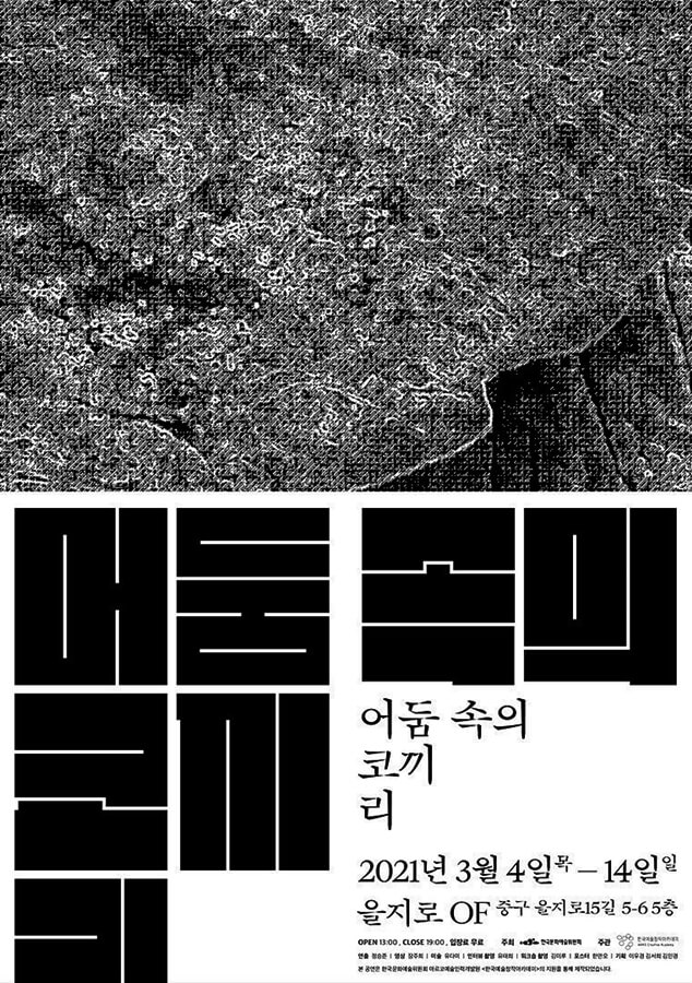 을지로의 대안공간인 ‘을지로OF’에서 3월 4일부터 14일 <어둠 속의 코끼리>라는 제목의 전시가 진행되었다. ‘을지로OF’를 찾아가기란 쉽지 않다. 복잡한 을지로 인쇄소를 지나, 오래된 노포의 야외 테이블을 거쳐 찾아간 건물 5층에 자리 잡고 있기 때문이다. 계단을 오르며 ‘여기가 맞는 거야?’ 하는 생각이 들 때쯤 상상치 못한 모습으로 관람객을 맞이한다.