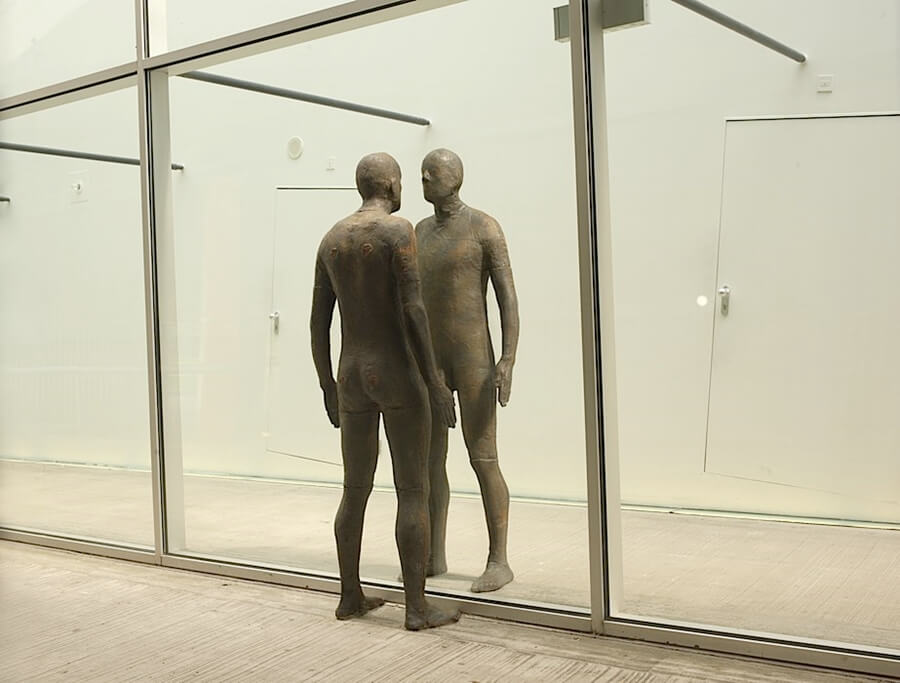 사람이라는 이유하나로 우리는 각자 자신만의 개성과 취향으로 자신을 만들어내고 지금도 그 과정을 함께 하고 있다. 시간이 지나고 세월이 변화는 것처럼, 우리는 매일 바뀌고 무언가를 새롭게 경험하고, 새로운 세대, 시대 그리고 삶을 알아간다. 어찌보면 인간의 신체는 이 구구절절한 표현보다도 단 한마디로 자신의 모습이자 자아정체성을 드러내는 하나의 표현 수단이 된다. 누구나 하나의 도구를 가지고 태어난다면, 우리 자신일 것이다. <반사 II Reflection II>(2008)에서도 마찬가지로 곰리의 조각은 무언가 우리와 닮아있으면서도, 그 조각이 분명 우리는 아니다. 하지만 곰리의 인체조각의 형상에서 우리는 거울로서 이를 바라본다. 쉽게 말하자면 거울 속에 비쳐진 우리의 모습이 곰리의 조각에 대입된다는 것이다. <반사 II>(2008)에서 거울을 매개로 그들은 서로를 응시하듯 조심스레 서로를 바라보고 있는 것 같지만, 조금은 다른 차이가 있을 것이다. 자신이 지금 거울에서 나를 발견하는 순간 그 감정은 어떤가? 자신의 외향을 바라보고는 있지만, 누군가 옆에 있다면 속마음을 들키지 않게 하기 위해 어색한 얼굴로 자신과 마주할 수도 있다.