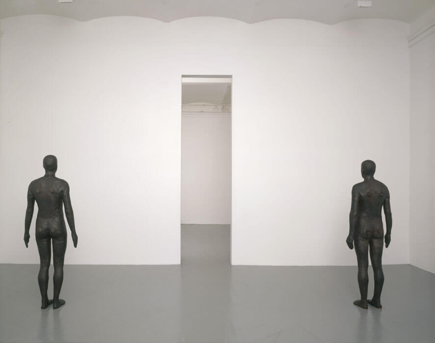 곰리는 <반사 II>(2008)에서 거울을 통해서 반사된 조각과 다르게 또 다른 방식으로 인체조각을 선 보였다. 거울이 아닌 실제 동일한 조각을 일직선상에 설치하여 서로를 향해있는 것이 아닌 벽을 보고 각자의 위치에서 앞을 향해 서 있게 한 <두 배 Two Times>(1997)이다. 곰리는 <두 배>(1997)에서 조각의 손끝에서 느껴지는 힘과 에너지가 서로를 의식한 듯 거리를 두고 보이지 않는 경계와 의식 속에 존재하게 했다. 그들 사이에 퍼지는 차분하고 고요한 기류가 전시 공간 안에 가득 차 있다. 서로 다른 시간을 살아왔으면서도 같은 공간에 머물며 자신의 자리를 지키고 있는 모습에서 우리와 어딘지 모르게 닮아있다.