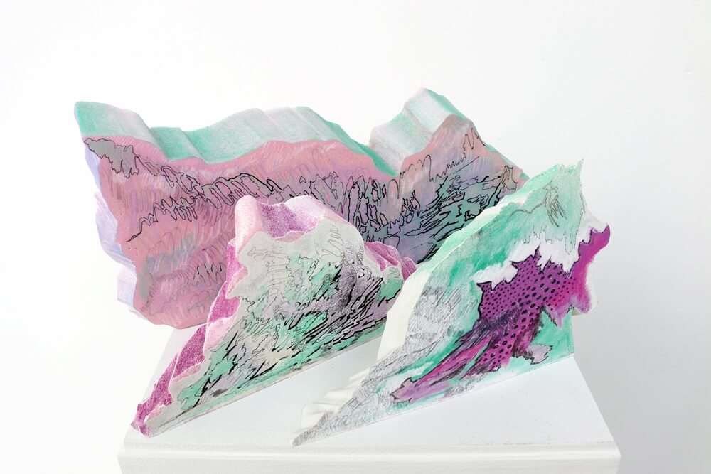즉흥 줄무늬 Mpromptu Stripes  아이소핑크에 펜, 연필, 오일 파스텔 등 / 가변설치 / 2019