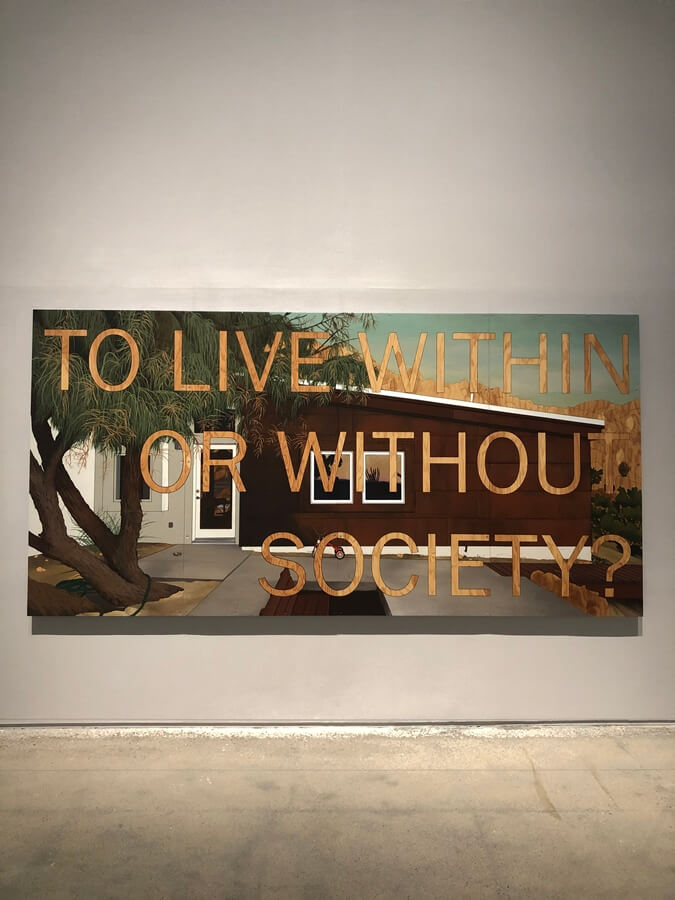 2013년에 제작된 안드레아 지텔의 <무제(Untitled)>(2013)는 마치 지금의 상황을 예견이라도 했던 듯 “사회 안에서 살 것인가 바깥에서 살 것인가?(To live within or without society?)”라는 직설적인 물음을 던진다. 이러한 질문은 사회와 인간의 관계를 명확히 규정 짓기 어려운 오늘날 개인의 선택에 따른 자주적 관계 형성의 문제로 비춰지는 한편 ‘안이든 밖이든’ 간에 사회 구성원으로서의 운명을 거스를 수는 없다는 측면에서는 무효하고 무용한 것이 되고 만다.