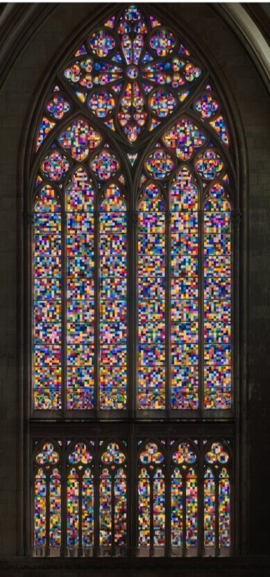그런 리히터가 2차 세계대전으로 파괴된 독일 쾰른 대성당의 스테인드글라스 제작을 의뢰받게 됩니다. 모두들 신앙심의 징표를 기대하고 있을 때, 그는 중세의 스테인드글라스에서 72가지 색을 뽑아내어 컴퓨터 프로그램으로 1만 1500개의 유리 조각에 배치합니다.