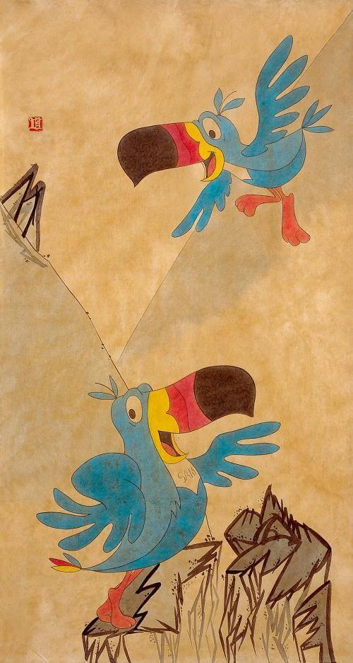 손동현의 그림은 옛 그림에 비해 단순하고 가벼워 보입니다. 그렇지요? 하지만 그 지점에는 간과하고 있는 것이 있습니다. 예술이란 시대가 낳고 시대가 기른다는 것이지요. 문화는 시대의 산물입니다. 문사철 시서화(文史哲  詩書畵)가 평생을 갈고닦는 자기 수련의 방책 중 하나였던 옛 조상들에게 있어 그림이란 수양(修養)이었습니다. 정신이 깃들어 있어야 했지요. 하지만 지금은 물질과 매스 미디어가 점령군처럼 진주한 땅에 화려하나 위태롭게 서식하고 있는 문화입니다. 만화 캐릭터 같은 그림 위, 붉은 그의 낙관은 개념의 경계를 흔들기에 충분합니다.