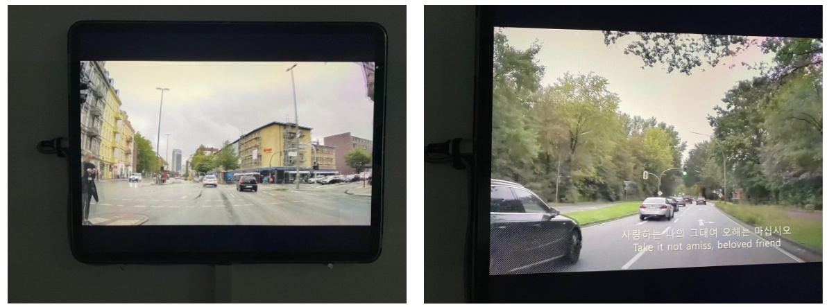 장보윤의 <블랙 베일>은 개인이 기억하는 파독 간호사의 삶을 다룬다. 이번 영상 작업 역시 장보윤이 영상 작업에서 자주 사용하는 '실제 당사자가 아닌 낯선 타인의 입을 빌려 전달하는 방식'으로 구성되어 있다. 이를 통해 작가는 관습적으로 대상을 지각하는 시간을 유예시킨다.