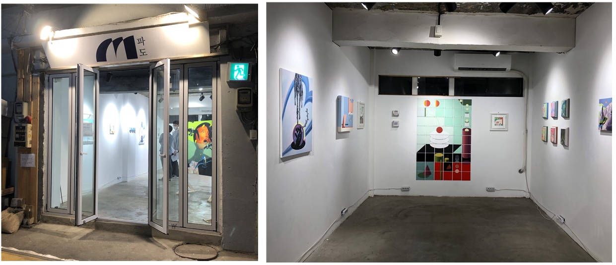 파도 갤러리, 이곳은 관람객이 들어가면 한눈에 작품이 다 담기는 다섯 평 정도 되는 공간이다. 홍대에 위치해 접근성이 좋지만, 동진시장 안쪽에 위치해 보일 듯 보이지 않는다. 지원하는 작가들이 많아 공모를 통해 이 공간을 지원한다고 한다. 이런 공간에서는 젊은 작가의 패기와 열정이 담긴 작품을 주로 만나볼 수 있는데, 본 전시도 세 명의 젊은 작가의 작품 15점(사실 더 많다)이 공간을 가득 채웠다. (그리고 모두 2021년 신작이었다.)