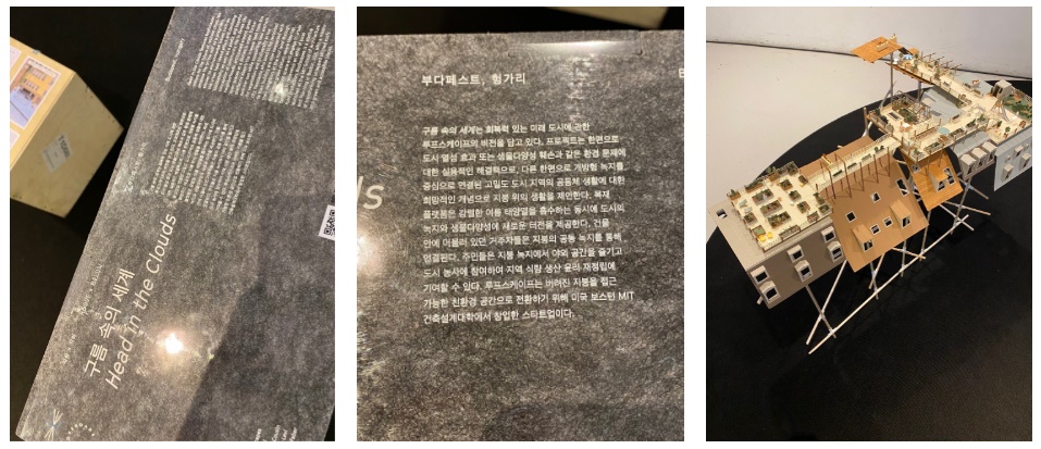 내가 생각하는 회복력을 갖춘 도시는, 상생하는 공간으로서의 도시이다. 사람은 공간 속에서 생활하고, 이를 연결하는 매개체는 건축이다. 상생하는 공간으로서의 도시란, 이번 비엔날레 도시전에서 다루고 있는 FIVE CROSSROADS, 지상과 지하/유산과 현대/공예와 디지털/자연과 인공/안전과 위험이 상생하는 공간이라 여긴다. 이러한 관점에서 가장 기억에 남는 작품은 Head in the Clouds(구름 속의 세계)이다.