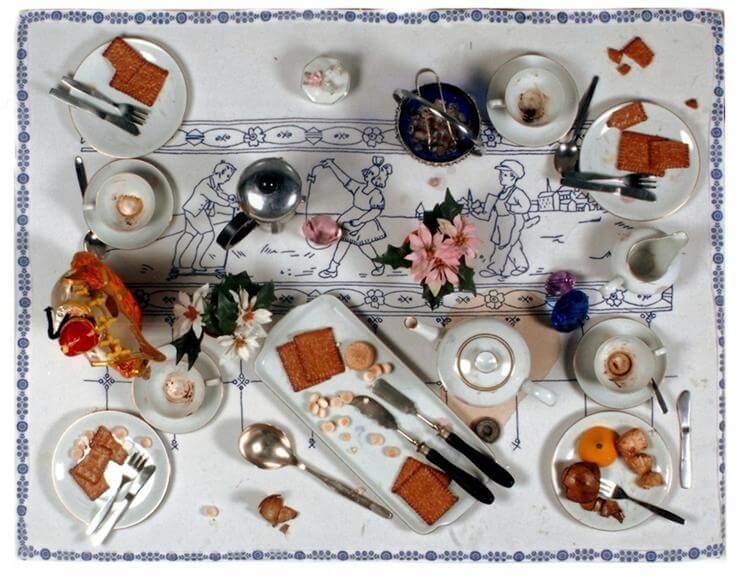 뒤셀도르프에서 푸른색 테이블 보드 위에 다 마신 커피잔과 담배를 고정시켰다. 스포에리는 규칙적이지 않고 아무렇게나 놓인 물건들을 붙잡는다. 사람들에게 '예술에서 숭고함을 찾는가? 아니면 예술 작품은 존재 자체에 가깝게 만드는 일인가?'는 질문을 던진다.