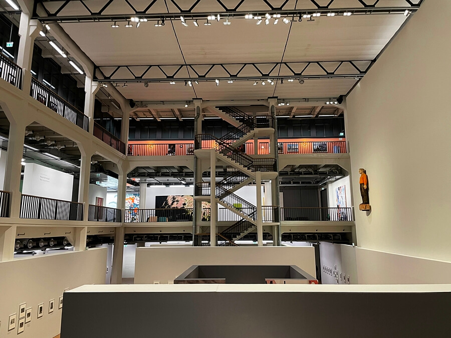 투박하게 그지없는 직육면체 공간의 중심은 천장까지 뻥 뚫려있고 테두리에는 그저 검은색의 난간들과 흰색의 구조물이 전부이지만 미니멀한 공간 구성은 오히려 작품에 진실성을 부여하고 작품에 대한 깊은 몰입감을 제공한다. 코로나 이전에는 가운데의 뻥 뚫린 공간에서 많은 예술 공연도 이뤄졌을 만큼 이곳은 칼스루에에서 가장 사랑받는 복합 예술 공간이 아닐까 싶다. 미디어 아트의 집합소인 이곳은 전시관뿐만 아니라 작업장과 연구실, 미디어 라이브러리 등 다양한 공간으로 구성되어 있어, 미디어 아트 분야의 전시뿐만 아니라 작업 및 연구, 보존을 목적으로도 사용된다. 특히 박물관 내에 헤르츠 연구소 같은 자체 연구기관에선 AR, VR, 인공지능 등을 활용한 미디어 아트를 연구한다.