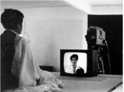 둘째로 비디오 매체가 처음 나왔을 당시 일부 작가들은 이것을 TV 매체에 대항하는 하나의 가능성으로 제시하기도 하였다. 이원곤은“TV문화를 비판하는 미디어로서 혹은 60년대 후반의 대항문화(counter culture)적인 입장에서 출발하고 있다는 것이 영화와 비디오 아트의 가장 현저한 차이점”(2) 이라 언급한다. 백남준의 <TV Buddha>(1968)(도판 1-2) 이런 지점을 잘 보여준다. 작품 속 불상은 TV 모니터를 바라보고 있는데 모니터 속 이미지는 바로 그 자신이다. 즉 모니터 뒤에 설치된 카메라에 찍히는 모습이 실시간으로 모니터에 상영된다. 이는 당시 TV를 통해 국가적으로 미디어를 통합하던 것에 대한 저항이자 쌍방향적 의사소통의 가능성을 제시한 작품으로 해석 될 수 있다. (3) 즉 ‘비디오’라는 매체는 하나의 저항적 도구, 혹은 정치적 가능성으로 사용되었으며 초기 비디오 아트의 일부 흐름은 이러한 사회 참여적 특성을 지닌다.
