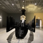 <작은 방주> 또한 큰 크기에 비해, 작가가 의도한 움직임을 볼 수 있는 위치는 고정되어 있다. 작품의 정면에서 바라볼 때 그 세밀한 움직임을 가장 잘 포착할 수 있는데, 이러한 정면성은 방주에 놓인 정면을 향한 인물들로 인해 더욱 강화 된다. 어찌 보면 작가가 의도한 이러한 정면성, 원근법적 환영은 작품과 관객의 거리를 형성한다. 작품을 가장 잘 감상 할 수 있는 위치가 있다는 건, 곧 가장 적절한 거리감이 있다는 건데, 이는 곧 관조적 시선을 자아낸다. <작은 방주> 작품 설명서에는 작품이 30분 간격으로  ‘공연’ 된다는 표현이 명시 돼 있다. 마치 연극 무대를 관객이 응시하듯, 작품은 재생되고, 그 공연을 관객이 되어 보게 되는 방식을 취한다.