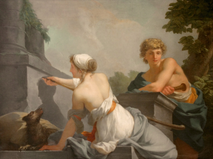 여성은 남성과 곧 헤어질 것이다. 그녀는 그를 기억하기 위한방법으로 그림자를 선택했다. 그리곤 그림자를 따라 벽에 선을 긋고 있다. 이것은 단지 신화에 등장하는 이야기다. 하지만 수많은 이야기 중작가가 이 이야기를 고른 이유는 무엇일까?