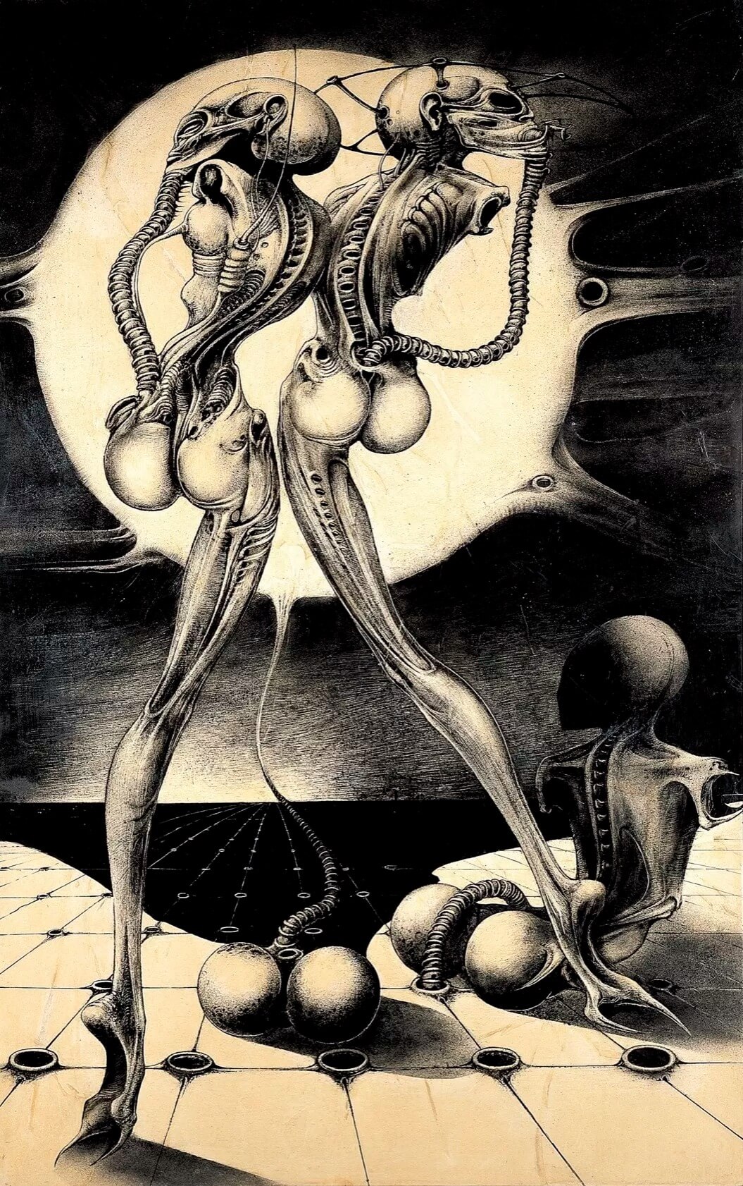 스위스의 초현실주의 작가, H.R 기거(H.R. Giger). 그의 작품들은 아무도 흉내 내지 못할 독보적인 콘셉트로 우리를 매료시킨다. 앞서 언급했듯, 그의 작품 세계의 출발이 유년시절의 악몽이었다는 것은 아주 유명한 이야기다. 어떻게 이런 괴물이 등장하는 꿈을 꾸며 매일매일을 버텨낼 수 있는지 의문이 갈 만큼 공포스러운 광경이다.