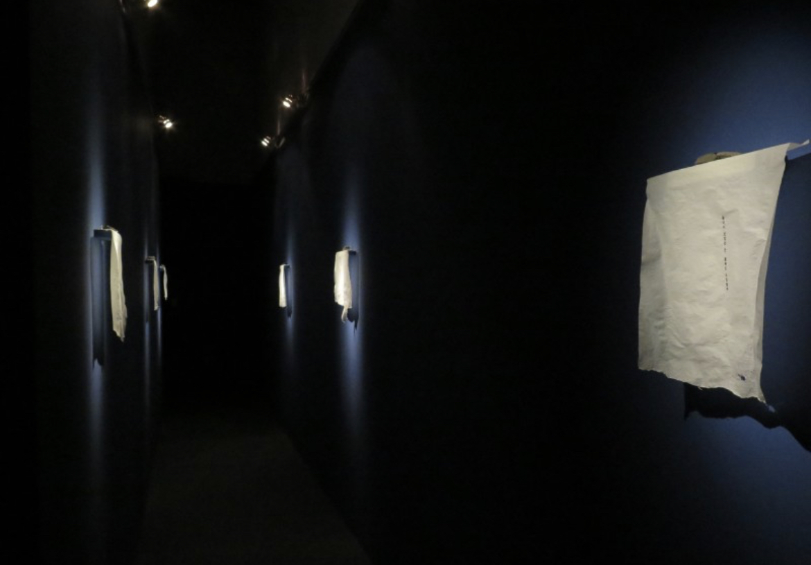 어두운 통로 벽면으로 환한 종이들이 떠있다. 종이 한 장의 가벼움이 허공에 솟구치며 환하게 빛난다. 제대로 대우받지 못한 듯 구겨지고 비뚤어진 종이는 빼곡한 잔주름 사이로 한 줄의 문장을 간신히 붙잡고 있다.