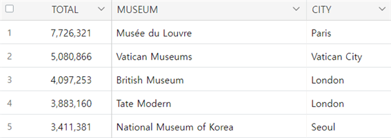 2022년 글로벌 뮤지엄 방문객별 순위 ⓒTHE ART NEWSPAPER