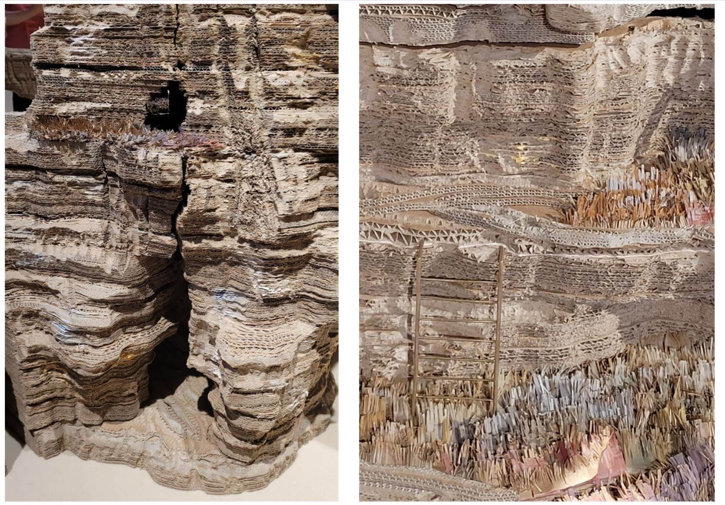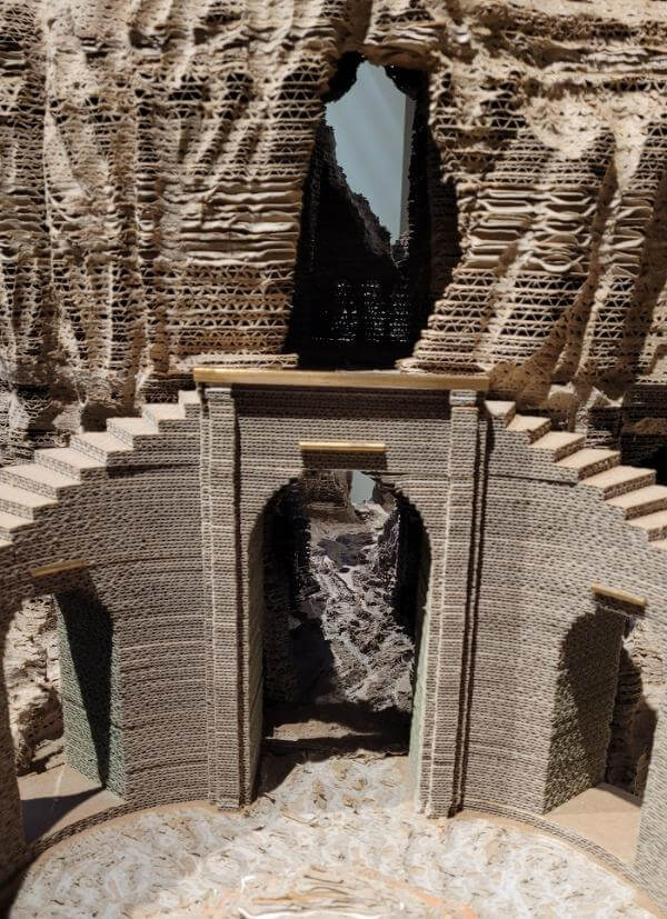 조스팽의 설치 작품을 보고 있으면, 평소 이렇게 골판지를 자세히 들여다본 적이 있나? 생각이 든다. 매일 오는 상자를 버리기 바쁘다. 쉽게 구할 수 있고 버려지는 골판지가 시각적이고 이해하기 쉬운 작품으로 눈 앞에 펼쳐진다. 조스팽은 작가 자신의 이야기나 생각을 제시하고 싶지 않고, 관객 각자가 해석해 주길 바란다고 말한다. 가볍고 견고하며 동시에 환경친화적이라 재료가 지닌 물성을 가지고, 조스팽은 예술과 자연 사이에 서 있는 우리에게 질문을 던진다.