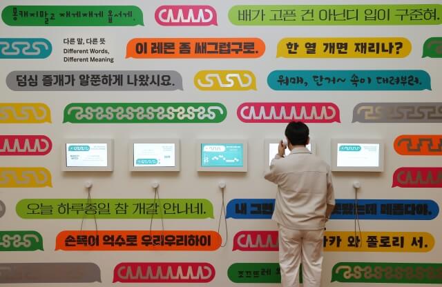 <사투리는 못 참지!>의 전시 구성은 ‘이 땅의 말’, ‘풍경을 담은 말’, ‘캐어 모으는 말’의 3부로 이루어져 있다. 간략하게 부연하자면 사투리와 방언의 본질에 대해, 방언과 우리 삶에 대해, 앞으로의 방언에 대해 기획된 3부로 요약할 수 있겠다. <사투리는 못 참지!>는 ‘살아 움직이는 말’을 살아 움직이는 우리가 짧게나마 체화해 보게끔 유도한 동적인 전시였다. 평소에 잘 모르던 방언이더라도, 어떻게 말하는지 유추할 수 없는 억양이더라도 누구나 한 번쯤은 따라서 말해보고 싶게 하는 콘텐츠들로 전시장은 밀도 높게 채워졌다.