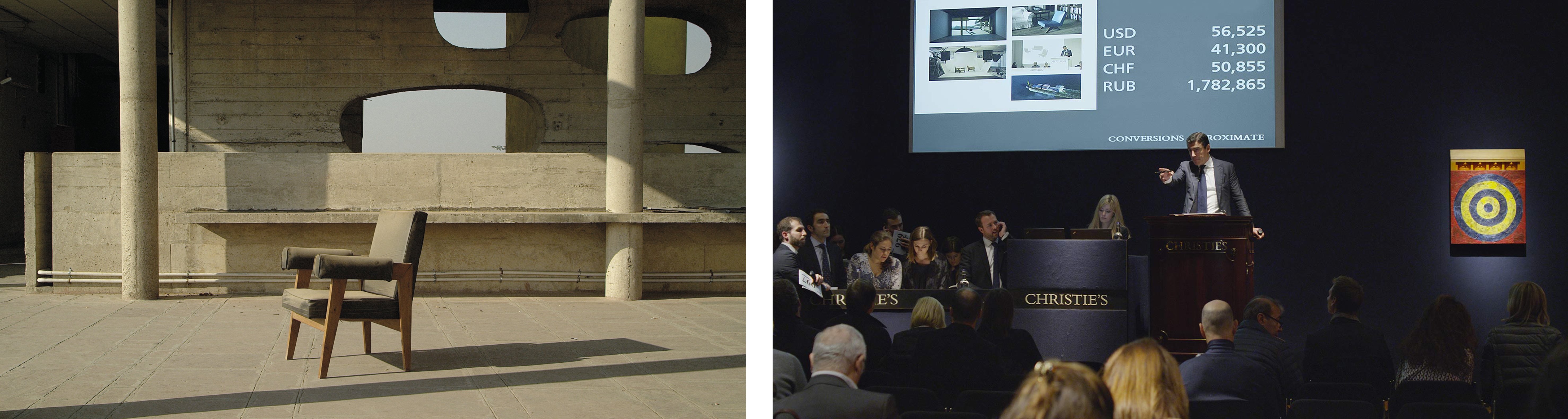 레스티프의 작품 속에서 포착되는 건축은 아즈텍의 폐허인 틀라텔로코 위에서 이루어지는데, 그러한 유적의 파괴가 이루어지며 들어선 획일적인 모더니즘 건축들에서는 폭력이 감지된다. 더욱이 1968년 틀라텔로코에서 일어난 민주화를 갈망하는 시민들을 무자비하게 학살했던 틀라텔로코 대학살의 기억은 우리는 공허함을 통해서 마주할 수 있다. 이는 대단히 아름답지만, 그 아름다운 공간들을 점유하지 못하는 기이한 쓸쓸함을 통해서, 부재의 불편함을 통해서 마주한다. 중세가 막을 내리고 이성의 시대가 문을 열고 이 같은 이성의 시대를 상징하는 개념이 모더니즘에 다름 아니었고, 이는 인간의 이성을 통해 전문화된 문화의 육성 및 문명의 진보에 이바지하는 움직임 이었다. 하지만 그 모더니즘 건축을 누려야 할 그 인류는 어디로 갔는가. 모더니즘이 실제 삶과 유리된 비정치성의 한계가 지적된다. 레이스 마이라의 작품도 이와 유사한 맥락에 놓인다. 정치권력의 관저를 이루는 모더니즘 건축은, 서구로부터 인정을 받으려는 움직임과 그들의 근대화가 성공했다는 선전의 움직임을 포착하고 있다. 하지만 그러한 랜드마크들은 오히려 그들을 식민통치 했던 서구의 방법론을 답습하고, 그들과의 경제적인 외교를 위한 도구에 다름 아니기에, 여전히 끝나지 않은 식민의 역사를 포착한다. 결국 우리가 이 두 남미작가들의 작품들에서 읽어내는 것은 기형적인 아름다움의 고통과 부재의 고통, 그리고 서구중심적인 동일시의 폭력이다. 더불어 에이미 시켈의 영상작업들 또한 살펴보자. 그 아름다운 모더니즘 건축 및 가구들은 그저 전시되어 있을 뿐이다. 그 공간들은 텅 비어 있어, 그것들 자체가 물신화되고 그것으로 삶을 풍요롭게 해야 할 인물들은 부재해있다. 연결되는 이후의 작품에서 인간들이 드디어 모습을 드러내지만, 그들은 그 가구 및 건축들을 점유하지 못한다. 그들은 관람객의 형태이거나, 그것을 단지 소유하고 숭배할 구매자와 경매인의 형태로 모더니즘은 우리의 삶으로부터 유리되어 있다는 것을 드러낸다.