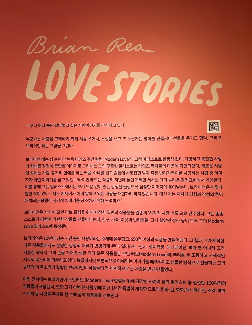 우리는 살아가면서 수많은 감정을 억누르거나 외면하며 살아간다. ‘사랑’ 역시 그 중 하나다. 그러나 이 전시는 사랑이라는 감정을 다채로운 이야기들을 통해 풀어내며, 우리에게 위로와 함께 잊고 있던 사랑의 소중함을 다시 일깨워 주었다. 이 전시는 그 자체로 관람자들에게 깊은 힐링의 시간을 선사했다고 느낀다.
