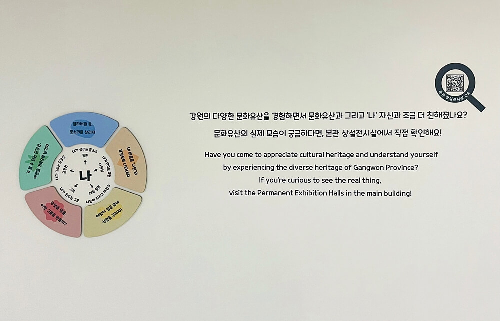 강원도의 자연을 온몸으로 느낄 수 있는 자연 속을 누벼요’, 나한상처럼 망토를 두르고 사진을 찍어보는 짜잔 변신해요!’, 강원의 토기를 직접 조립해 보는 무늬를 만들어요’, 종 모형의 공간에 들어가 종소리를 직접 들어보는 소리로 느껴요’, 옛 절터 보살상을 직접 쿠션으로 쌓아보는 조각들을 쌓아요’, 색상과 크기가 가지각색인 유물을 나만의 분류법으로 섞어보는 자유롭게 나누어요까지 전시실에서 처음 만나면 재미없다고 느꼈을 만한 유물을 저마다의 콘텐츠로 색다르게 제시하고 있었다.