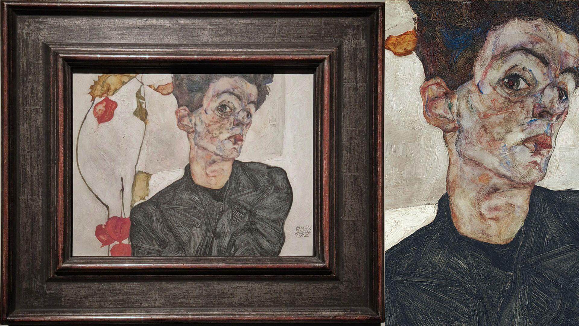 ‘꽈리 열매가 있는 자화상’ (1912), 패널에 유화 물감과 불투명한 물감, 레오폴트미술관 소장